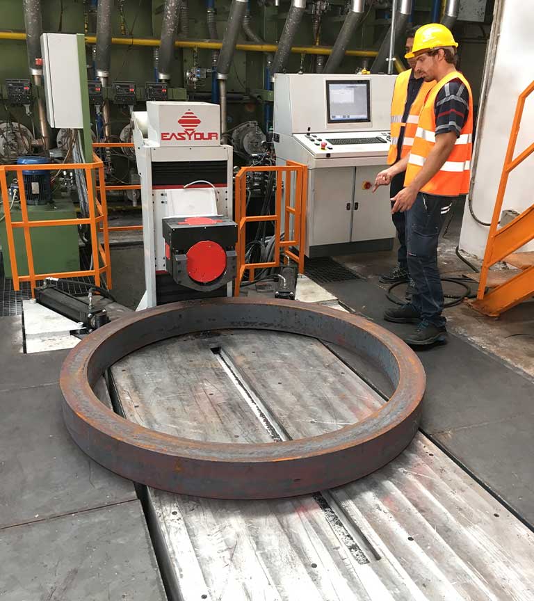 Easyrings ist ein spezielles Produktionshärteprüfgerät, das sich in jeder Hinsicht von gewöhnlichen Laborhärteprüfgeräten unterscheidet: Die Struktur besteht aus massivem Stahl und ist so konzipiert, dass sie das Gewicht sehr schwerer Komponenten wie Metallringe, die mit Gabelstaplern oder anderen Positionierungs- und Fördersystemen transportiert werden, tragen kann und der Arbeitsumgebung standhält.