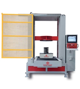 Machine électromécanique équipée d’une plate-forme entièrement motorisée pour la détection de la rigidité axiale, transversale et latérale, de la déflexion et de l’angle d’inclinaison selon les normes ferroviaires, telles que : EN 13298, EN 13913 (ressorts coniques).