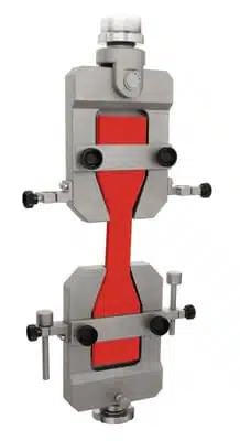 Si tratta di un classico provino ad “osso di cane”, che viene generalmente testato con degli appositi afferraggi, al posto delle classiche pinze con morsetti.